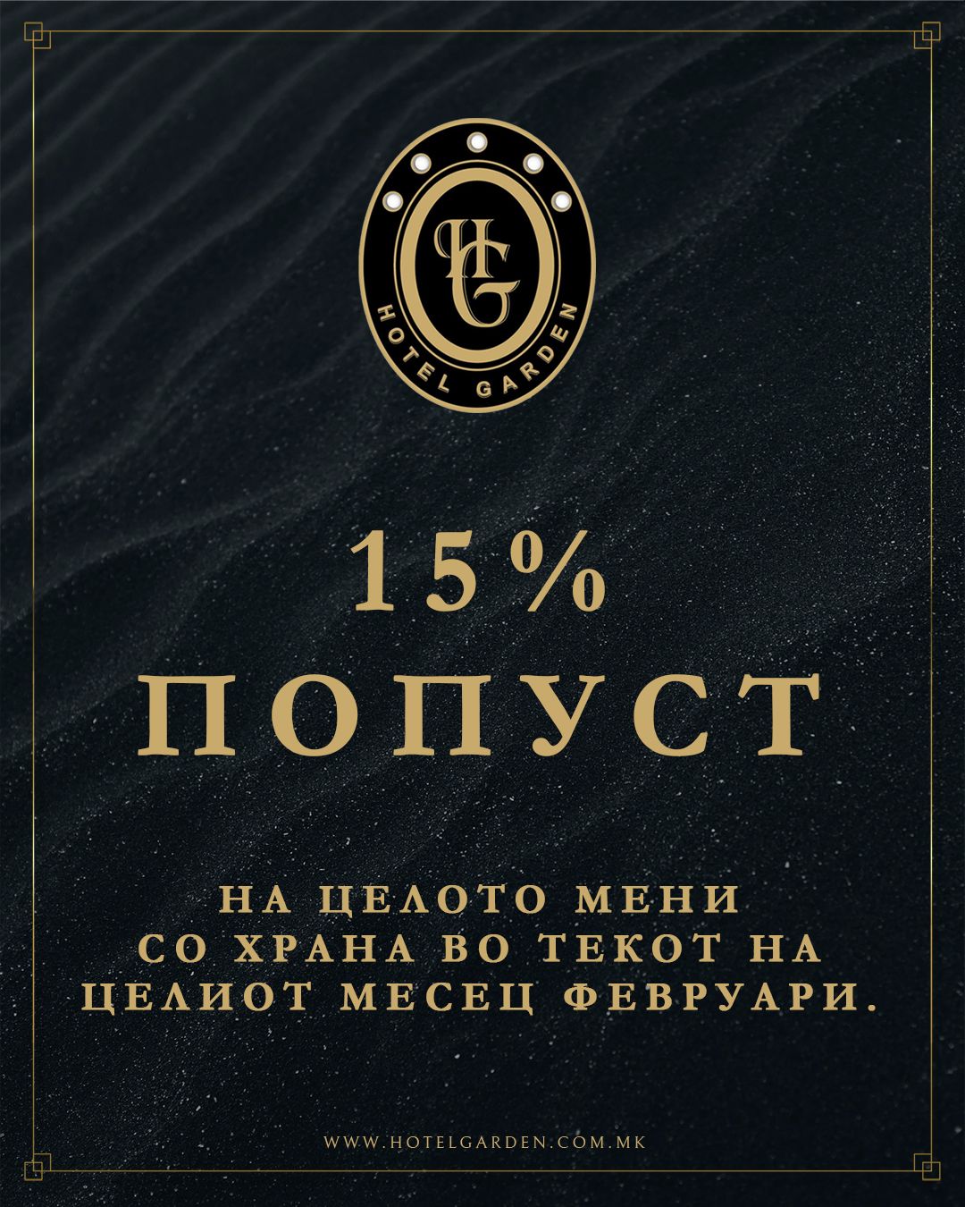 15% ПОПУСТ ВО Х. ГАРДЕН НА ЦЕЛОТО МЕНИ СО ХРАНА ДО КРАЈ НА ФЕВРУАРИ
