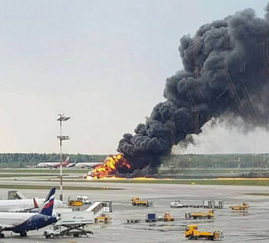 41 лице ги загуби животите во пожар што зафати авион од типот „Сухој Суперџет 100“ при итно слетување на московскиот аеродром „Шереметјево“. Светските медиуми пренесуваат дека страотната несреќа ја преживеале 37 патници. Aвионот требало да лета од Москва за Мурманск, но поради пожар бил принуден да се врати на аеродромот во рускиот главен град.