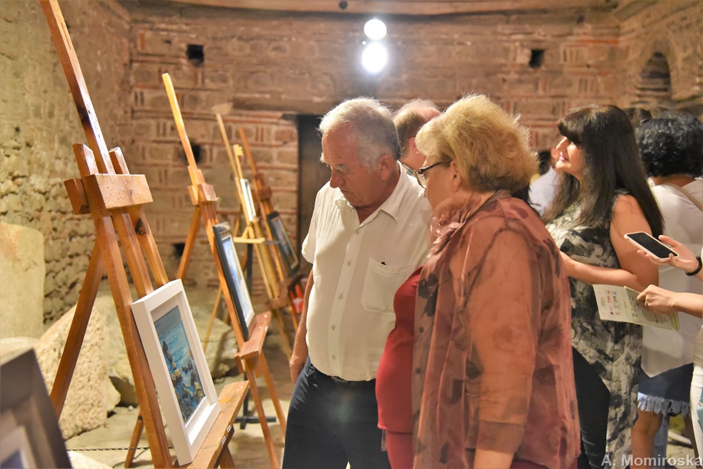 Во прекрасниот и уникатен амбиент на предворјето на катедралната црква Св. Софија, синоќа, во рамките на дополнителната програма на фестивалот „Охридско лето“, беше отворена самостојна изложба на слики „Бранови и мисли“ од Наташа Попоска Карче.