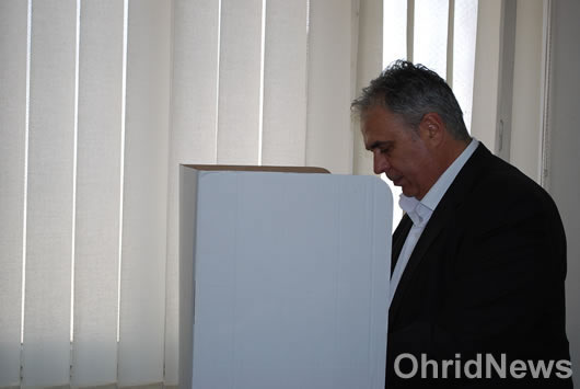 Кандидатот за градоначалник на Охрид од Сојузот за Македонија, Александар Петрески, гласаше на избирачкото место 1279 во просториите на Агенцијата за вработување.