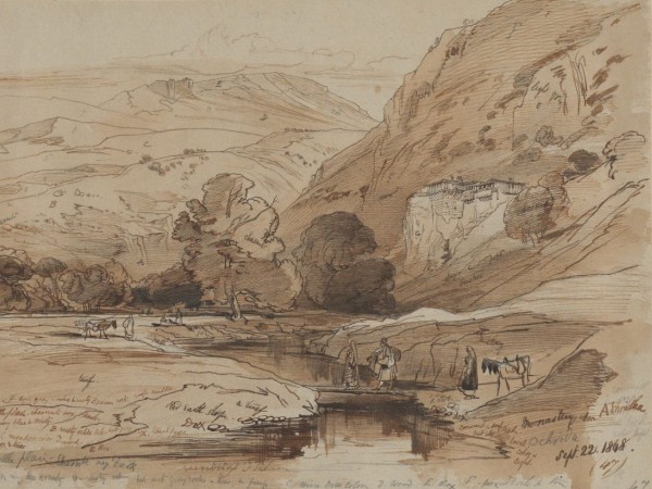 -Едвард Лир бил личен учител по цртање на британската кралица Викторија, тој бил писател, автор на бројни поетски збирки и илустрации. Тој престојувал во Охрид во септември 1848 година и покрај останатите патеписни илустрации и белешки од овој регион, поминувајќи по стариот пат од планината Петрино, го насликал и манастирот „Света Петка“. Од неодамна копија на оваа слика е подарена на манастирот, но истата може да се најде и во рамки на дигиталната библиотека на „Харвард“, вели Владимир Шокароски, кој во моментов ја подготвува првата целосна Монографија за манастирот.