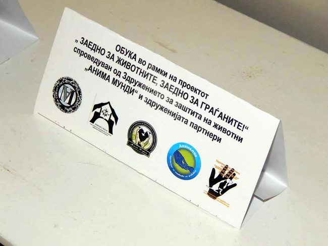 Викендов во Скопје беше спроведена обука во рамките на проектот „Заедно за животните, заедно за граѓаните“, инициран од Здружението за заштита на животни Анима Мунди од Скопје, а поддржан од Анималиа Охрид, Animal world Струга, Мали Херои Битола и Гласот за животните од Велес.