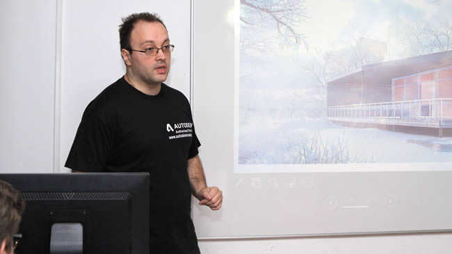 Тимот на „Аутодеск Македонија“ составен од пет инструктори од Битола, Штип и Скопје ја претстави програмата на Аутодеск САД, пред студентите на архитектонскиот факултет во склоп на Американ Колеџ Скопје. Акцент беше ставен на V-RAY плагинот кој овозможува фотореалистични рендери користејќи го софтверот 3DS MAX како матична платформа.