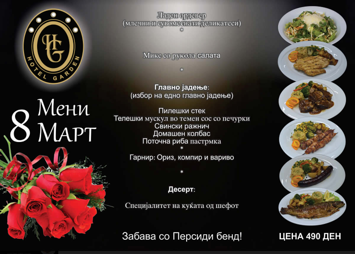 За претстојниот празник на жената 8-ми Март, хотелот „Гарден“ подготви богато мени по исклулително поволна цена.