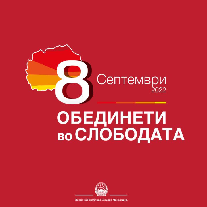 Во организација на Владата на Република Северна Македонија, по повод чествувањето на големиот празник, 8 Септември – Денот на независноста, под мотото: „Обединети во слободата“ ќе бидат одржани повеќе свечени и културни активности во целата држава.