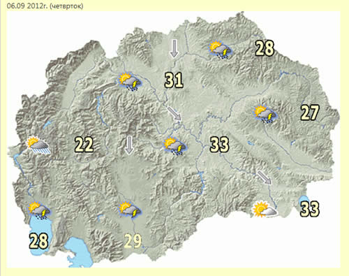 Времето денеска ќе биде променливо облачно со сончеви периоди, наместа ќе ќе биде нестабилно со пороен дожд , грмежи и засилен ветер, информираат од УХМР Македонија.