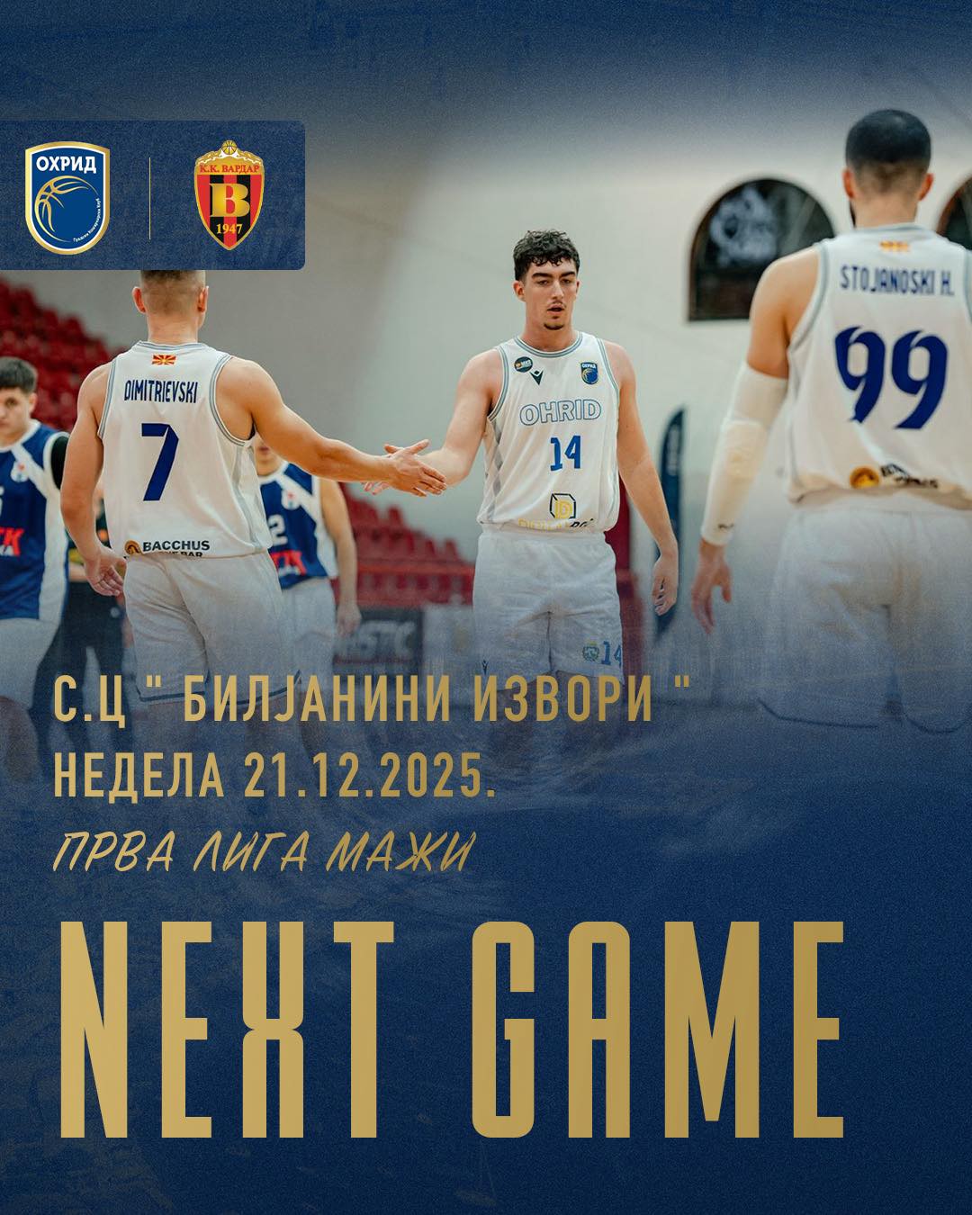 Во рамките на 10. коло од Прва лига мажи, екипата на ГКК Охрид ја пречекува екипата на КК Вардар од Скопје во натпревар кој ветува борба, енергија и врвна кошарка.