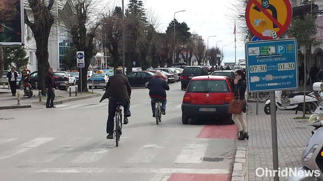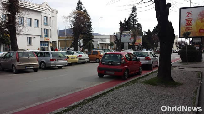 Надлежните утрово соопштија дека со специјална црвена боја ќе се обележува велосипедската патека на улицата „Македонски просветители“. И ја обележаа. Арно ама ниту тоа не ги спречи (не)совесните возачи и покрај строгата забрана да застануваат и времено да се паркираат токму на тој дел од коловозот.