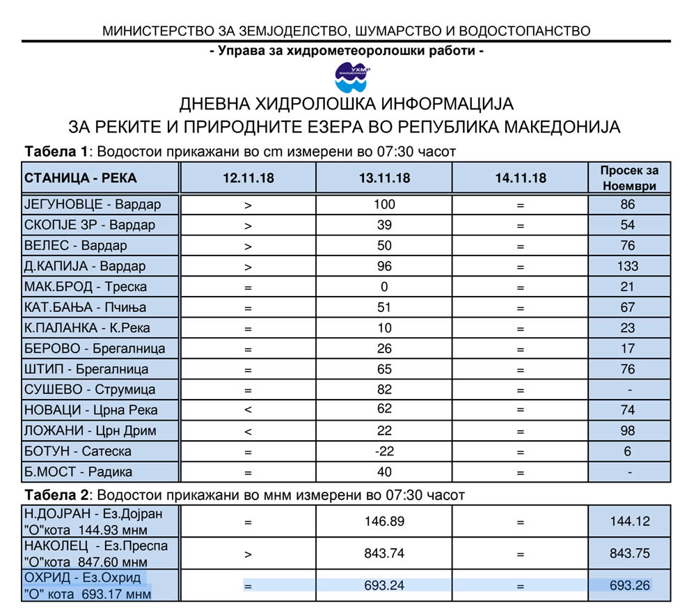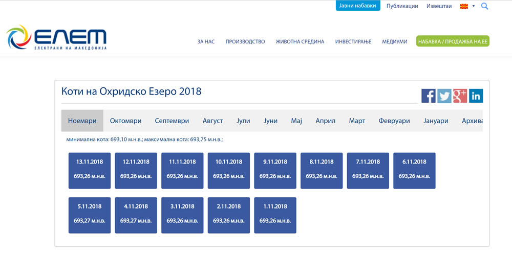 Од ЕЛЕМ информираат дека вимателно се следи состојбата со нивото на Охридското Езеро и дека четврта недела испустот на вода во реката Црн Дрим по чие течение на македонска страна има две хидроелектрани, е на минимум. На официјалната веб страна на компанијата стои податок дека нивото на езерото од 1 ноември до вчера е без промени, односно 693,26 м.н.в., што не соодветствува со податоците на УХМР според кои тоа е на 693.24 м.н.в. или на само 7 сантиметри до нултата точка.