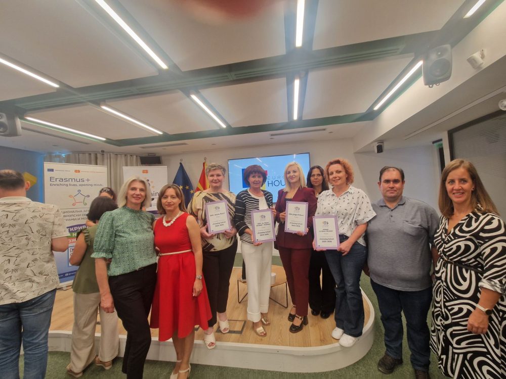 Наградените образовни институции од Охрид, кои се дел од европската заедница на учење, застапени на мапата на е Твининг, имаа чест да ја подигнат плакетата – симбол на нивната улога како водечки примери во воведување иновации, интеркултурна соработка и дигитална писменост.