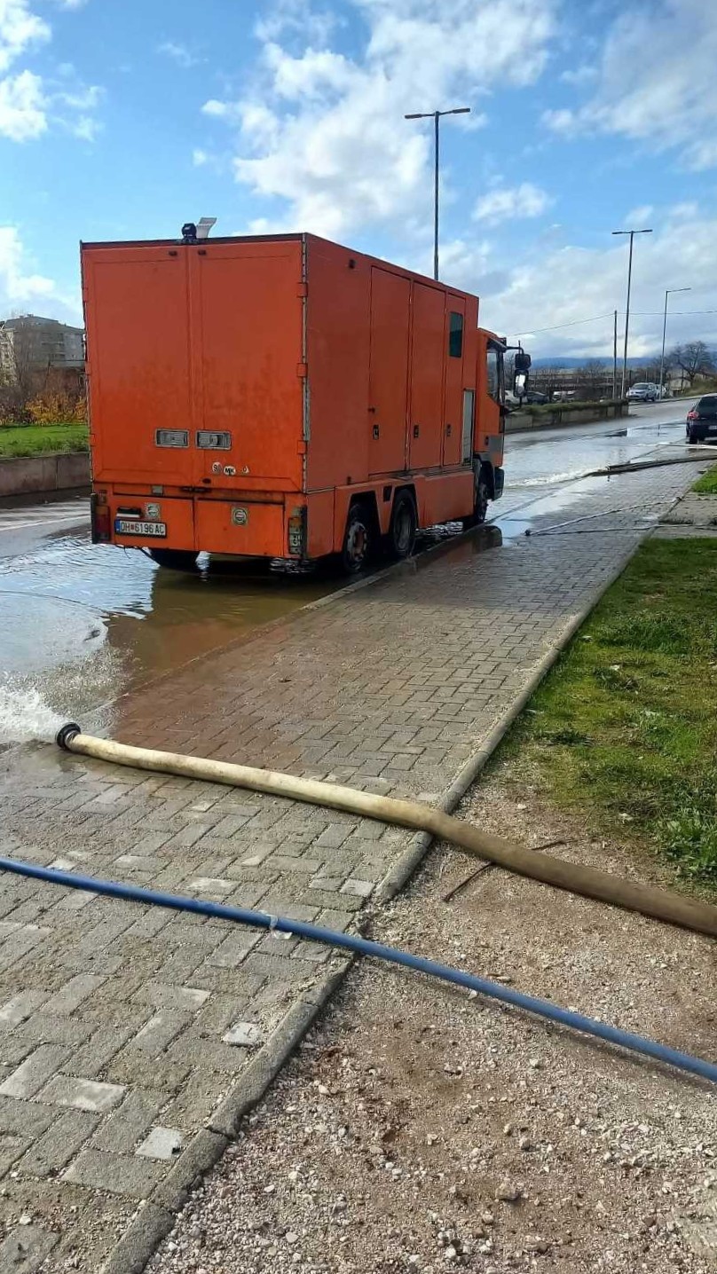 Се работи на неколку локации низ градот каде што имаше поплавување на улици и јавни површини, предизвикани од излевање на водотеци и атмосферска канализација. Во делови од градот, водата достигна повисоко ниво, поради што беше неопходно испумпување за да не се предизвикаат штети врз објектите, посочуваат.