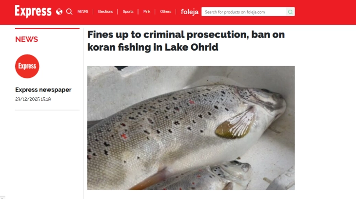 Албанските погранични служби од Поградец деновиве со засилени контроли на забраната за риболов на охридската пастрмка во Охридското Езеро, при што биле откриени поединечни случаи на нелегален риболов, за што се изрекуваат казни од високи парични глоби се до кривичен прогон, објави весникот на албански јазик „Експрес“.