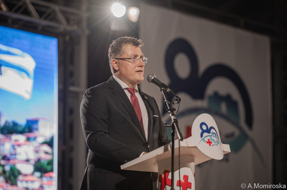 Упатувам искрени честитки на сите членови, волонтери и соработници на Црвен крст Охрид за нивната макотрпна работа, посветеност и резултати што го надминуваат локалниот карактер и се впишуваат во историјата на нашето национално друштво, но и во сеќавањата на оние на кои им помагале. Црвен крст не е само организација, тоа е чувство, надежта која не згаснува. Од основањето во 1945 година па се до денес оваа организација е жив сведок и активен учесник во сите кризни ситуации, здравствени, социјални, природни катастрофи, но и секојдневна потпора на многу семејства. Во сите овие години волонтерите од Охрид и Дебрца со љубов и несебичност покажаа што е вистинска хуманост, истакна на свеченоста претседателот на Црвениот крст на Македонија Ромел Велев.