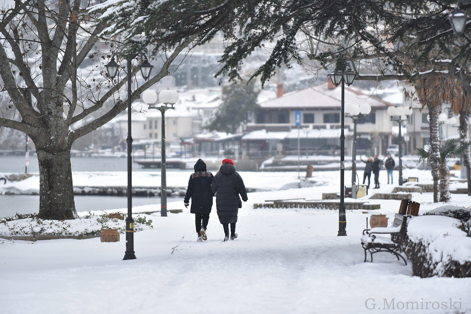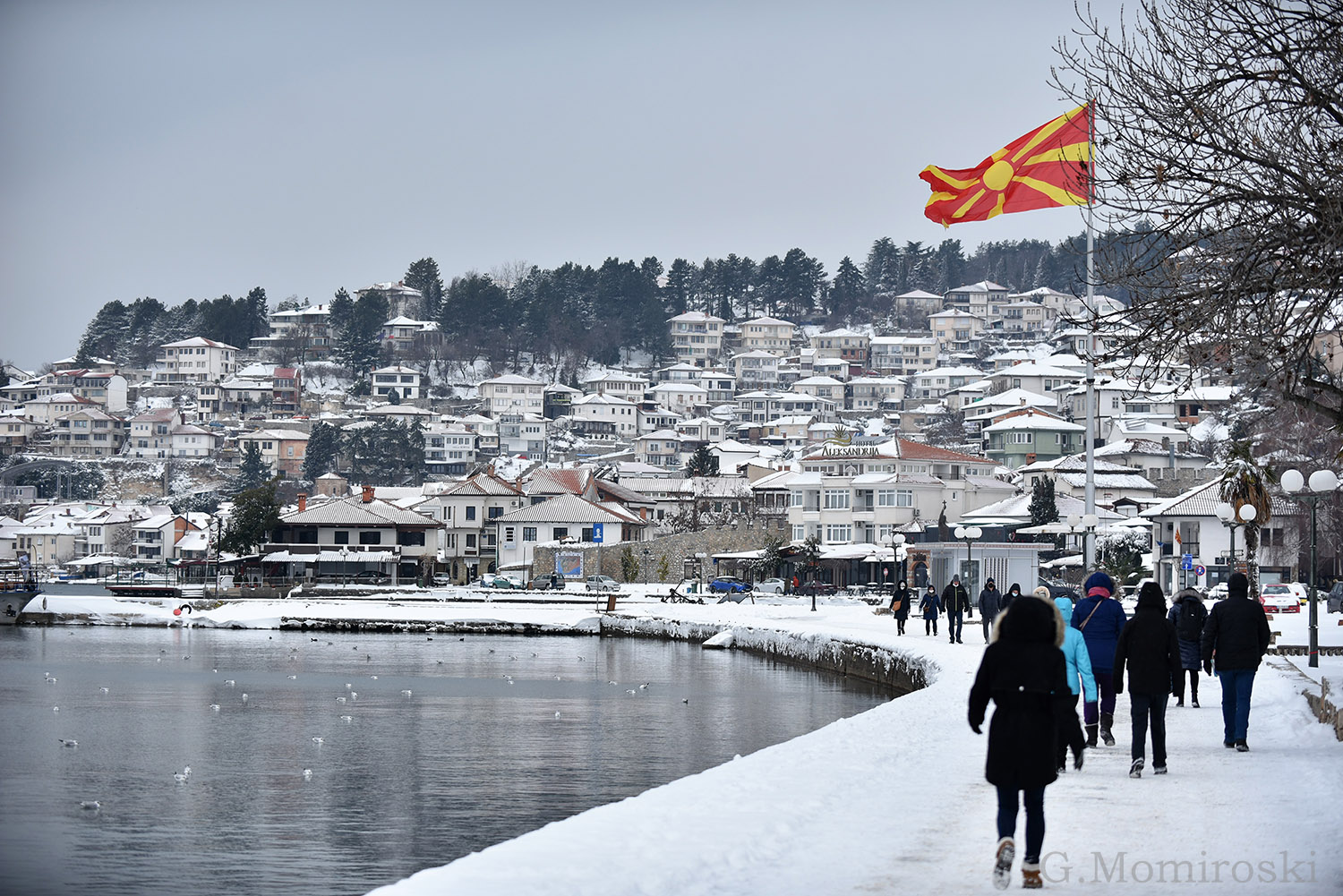 На поларна температура од -6 степени Целзиусови, снежниот Охрид денеска изгледа како некоја зимска дестинација.
