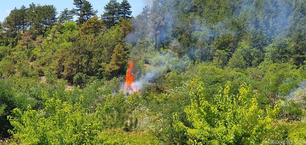 На местото на пожарот интервенира Професионалната противпожарна единица од Охрид, од каде информираат дека ситуацијата е под контрола.