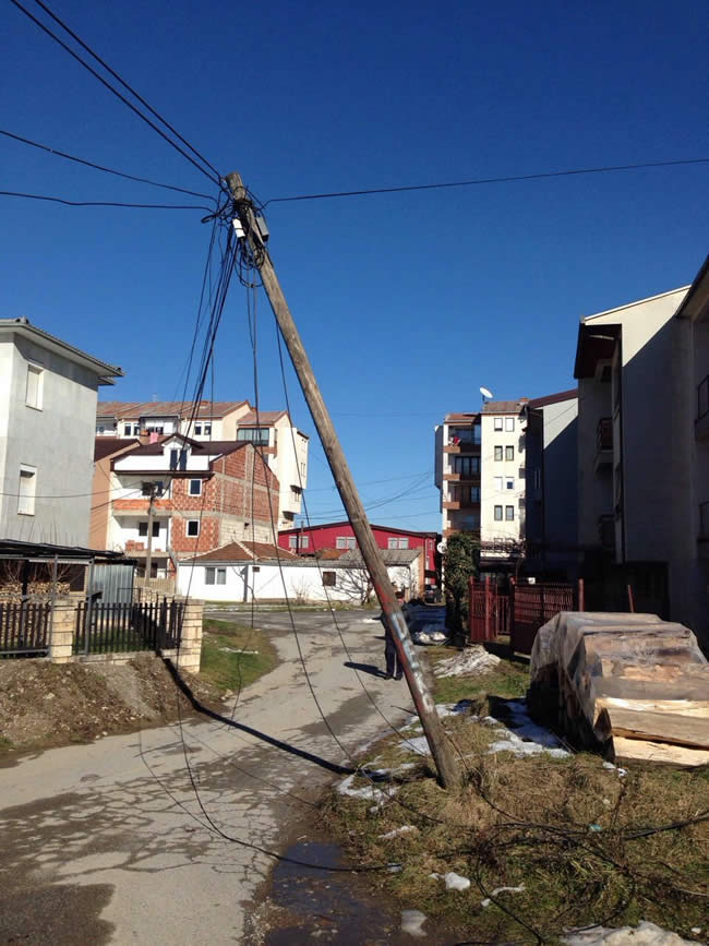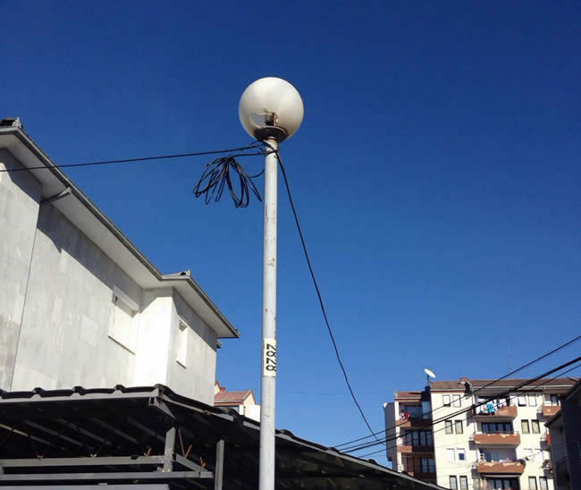 Една таква има и на улицата „Сатеска“, но итрите корисници намето да ги санираат оштетувањата, инсталациите од искривената бандера ги врзале за електричен столб.