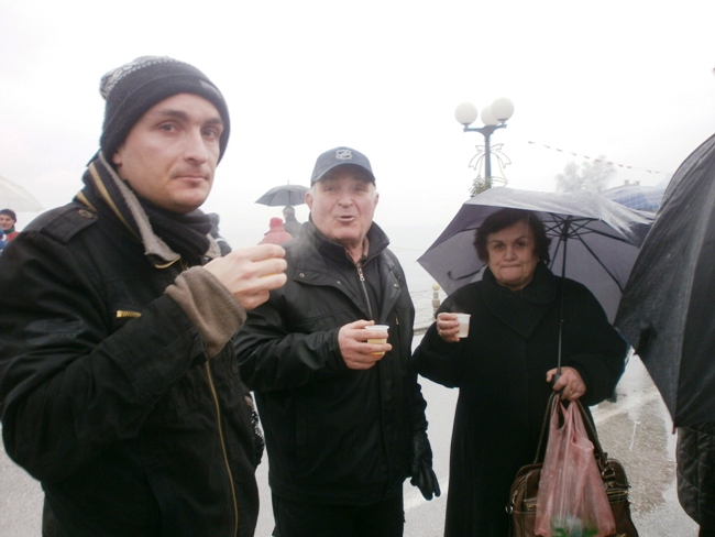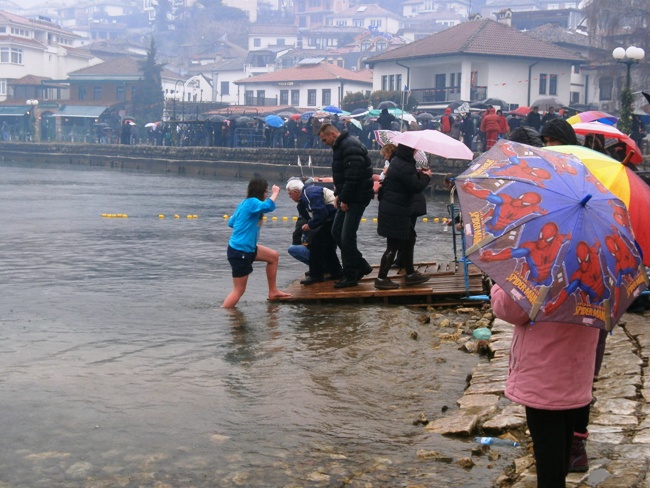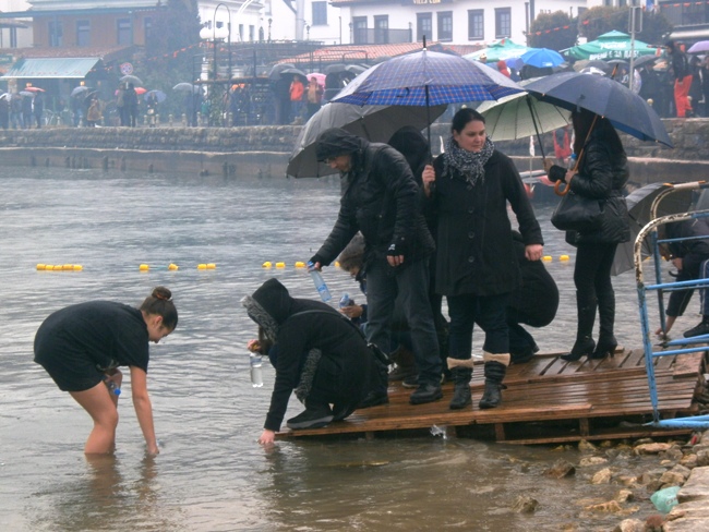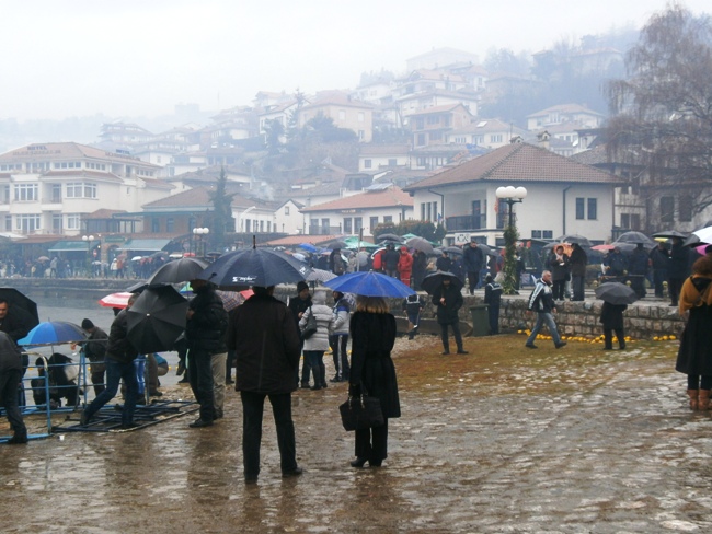 Иако дождот придонесе бројот на граѓани кои присуствуваа на чинот на фрлањето на светиот крст во водите на езерото да биде помал од очекуваниот, во Охрид денес на секој чекор се празнуваше и славеше големиот верски празник Богојавление Водици. Се полнеше од осветената вода за здравје, верниците палеа свеќи во чест на празникот.