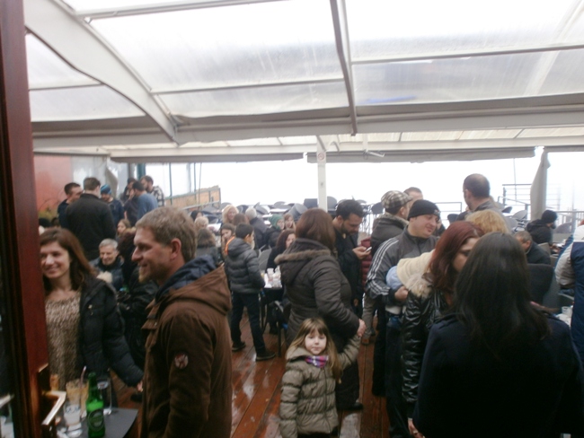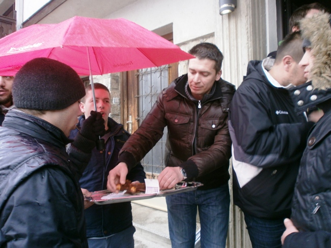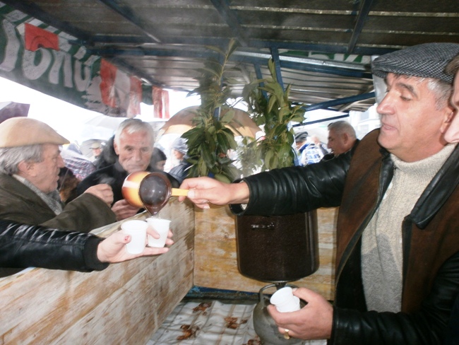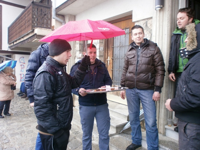 На тезги традиционално се точеше топла ракија, се делеше пача, се пееше и славеше. Весело беше и во бројните ресторани и кафулиња, каде денес како и секоја година бесплатно се дава топла ракија.