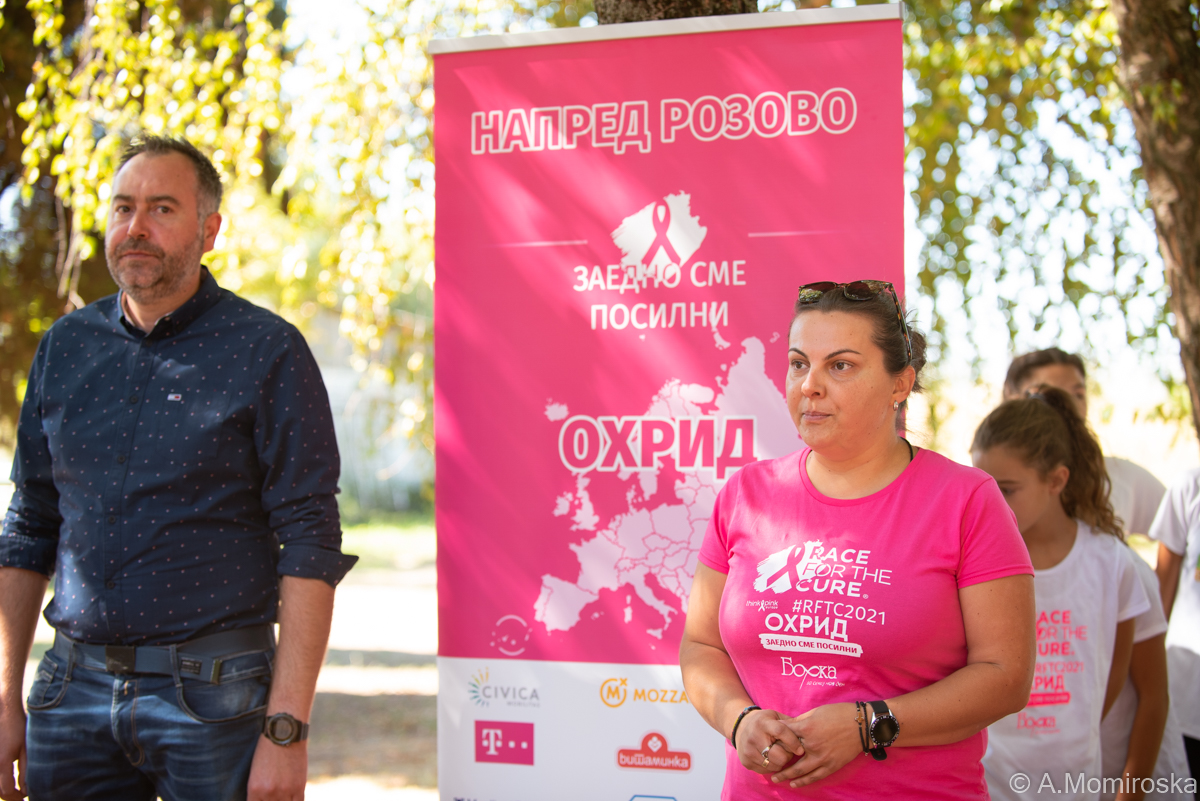 Во ист момент во повеќе од 140 градови од Европа, повеќе од еден милион луѓе ја започнаа прошетката во розово за поддршка на оние кои се борат со рак. Кон 13-та по ред трка „Напред розово- Race for the cure” се приклучи и Општина Охрид. Прошетката беше во организација на здружението „Борка – за секој нов ден”.