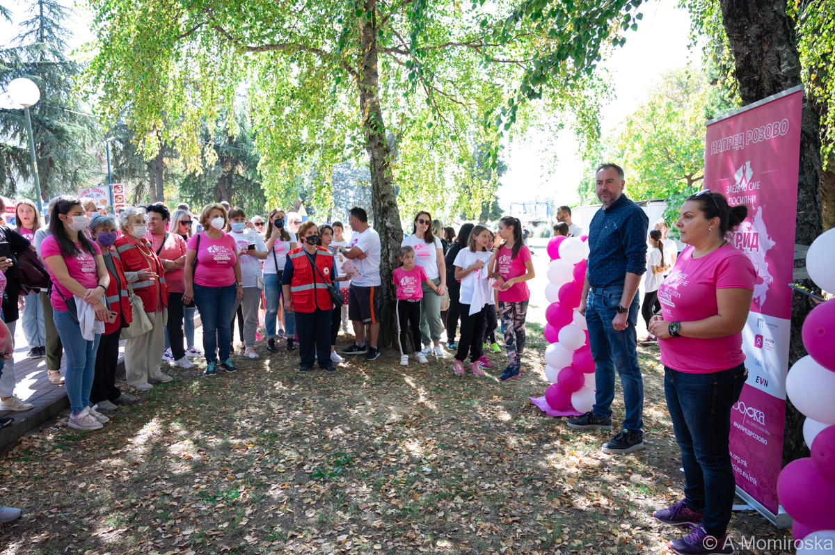 Во ист момент во повеќе од 140 градови од Европа, повеќе од еден милион луѓе ја започнаа прошетката во розово за поддршка на оние кои се борат со рак. Кон 13-та по ред трка „Напред розово- Race for the cure” се приклучи и Општина Охрид. Прошетката беше во организација на здружението „Борка – за секој нов ден”.