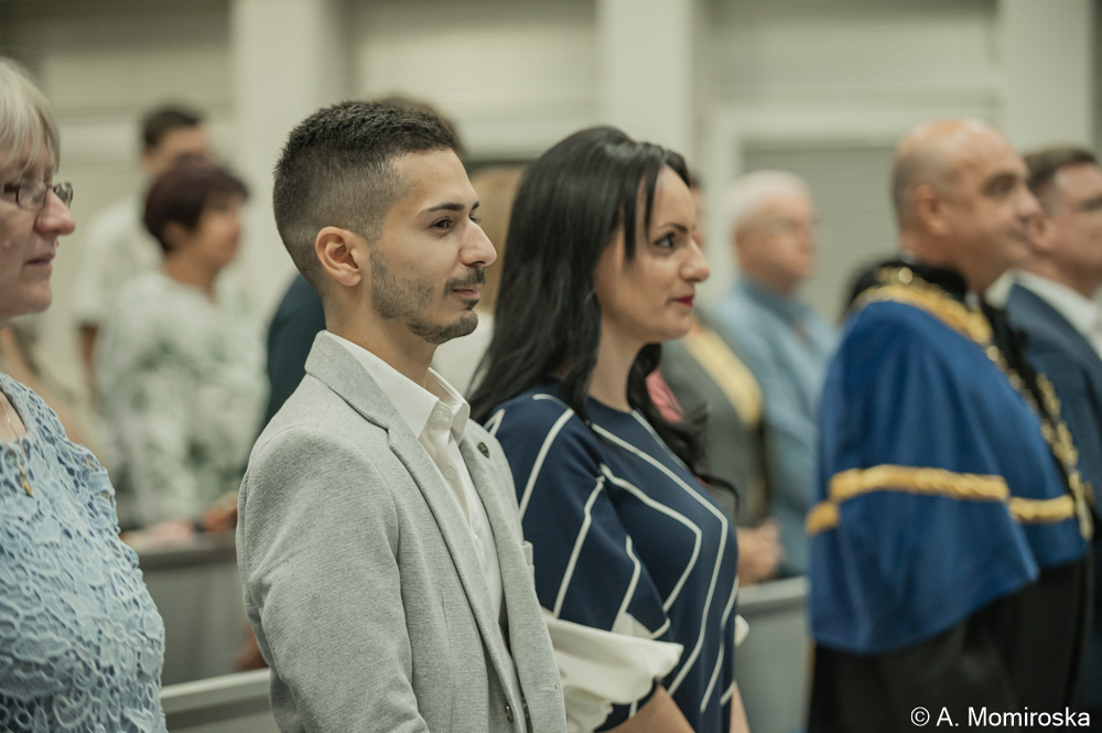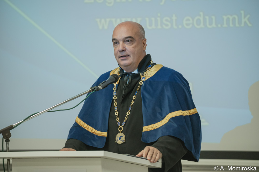Присутните студенти ги поздрави и поранешниот ректор на Универзитетот Нинослав Марина кој потенцираше дека Универзитетот има солидно место во историјата како уникатен универзитет во Македонија кој е вистински космополитски водич кон иднината.