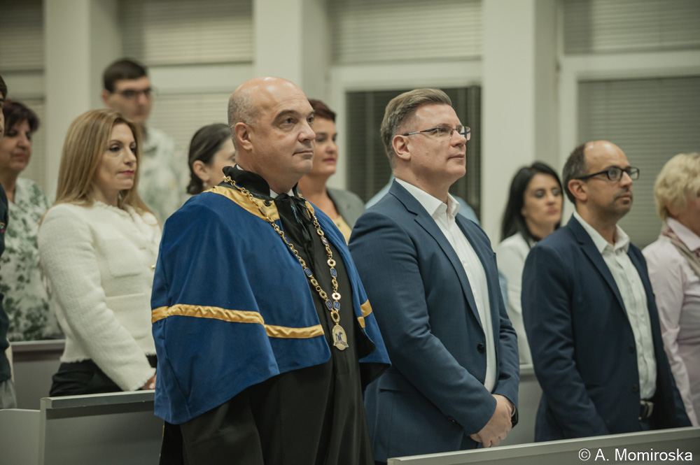 Со свечен академски час, Универзитетот за информатички науки и технологии „Св. Апостол Павле“ – Охрид денес го означи почетокот на академската 2025/2026 година. Настанот се одржа во амфитеатарот на Универзитетот со присуство на студенти, професори и гости.