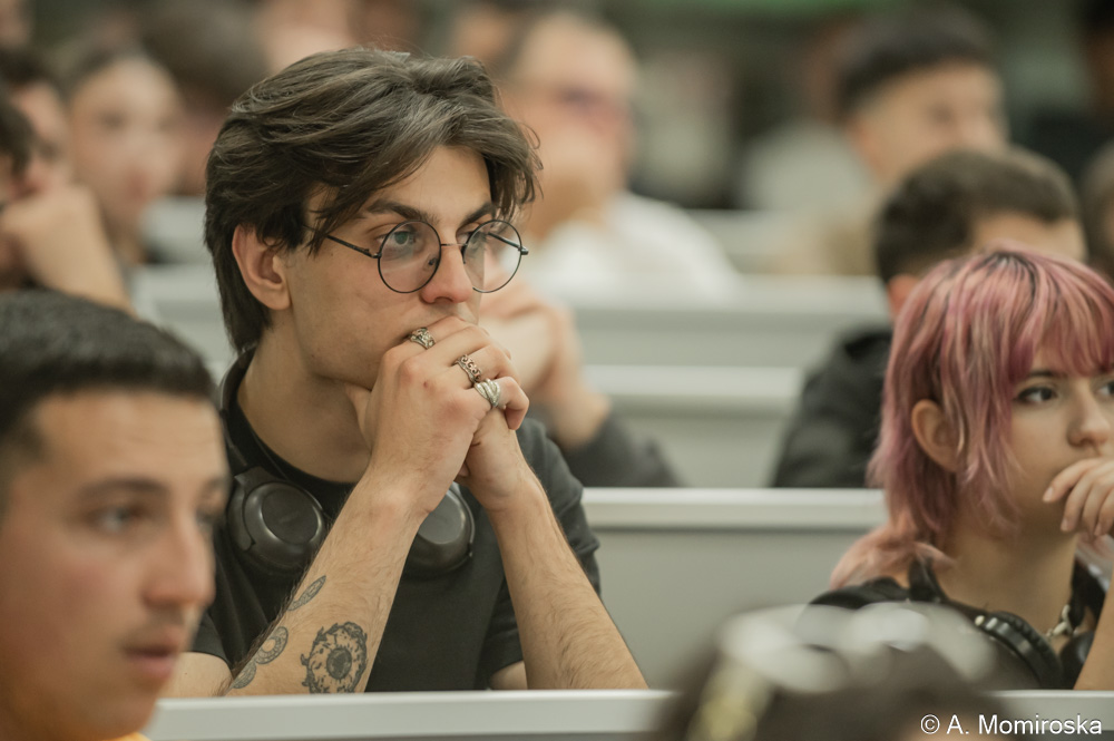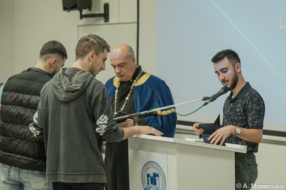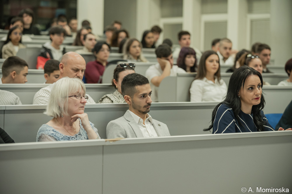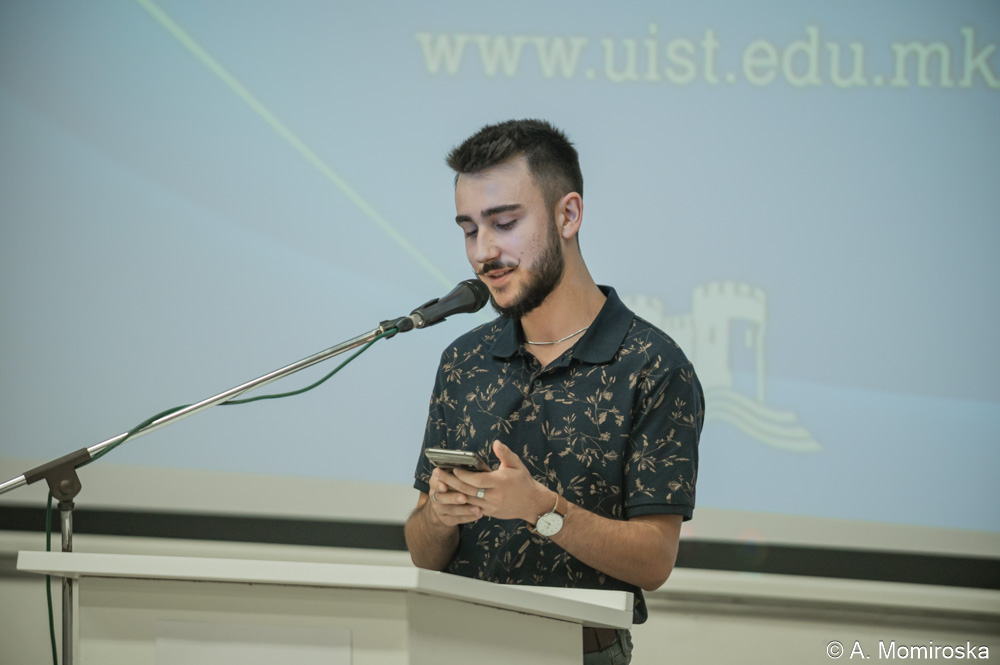 Пред присутните се обрати Филип Милошоски, поранешен студент на Универзитетот кој го пренесе своето искуство кое го стекнал студирајќи посочувајќи ги сите предности кои ги нуди Универзитетот, но и неговиот пат и развој низ годините по завршувањето на студиите.