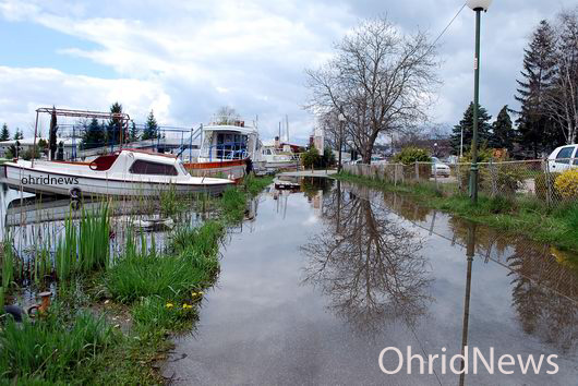 Високиот водостој на водните басени во охридскиот регион предизвикаа поплави не само по крајбрежјето, туку и долж каналот Студенчишта.