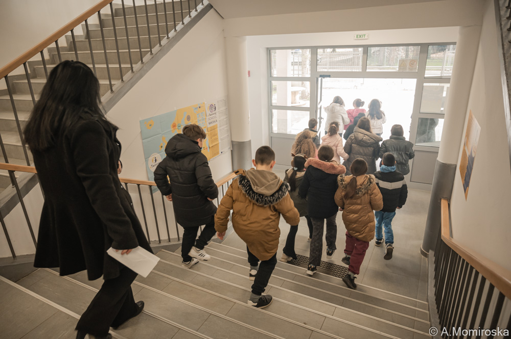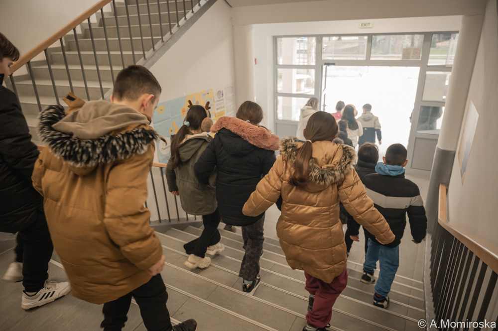 Показна вежба за евакуација во ОУ „Кочо Рацин“, безбедноста на децата на прво место