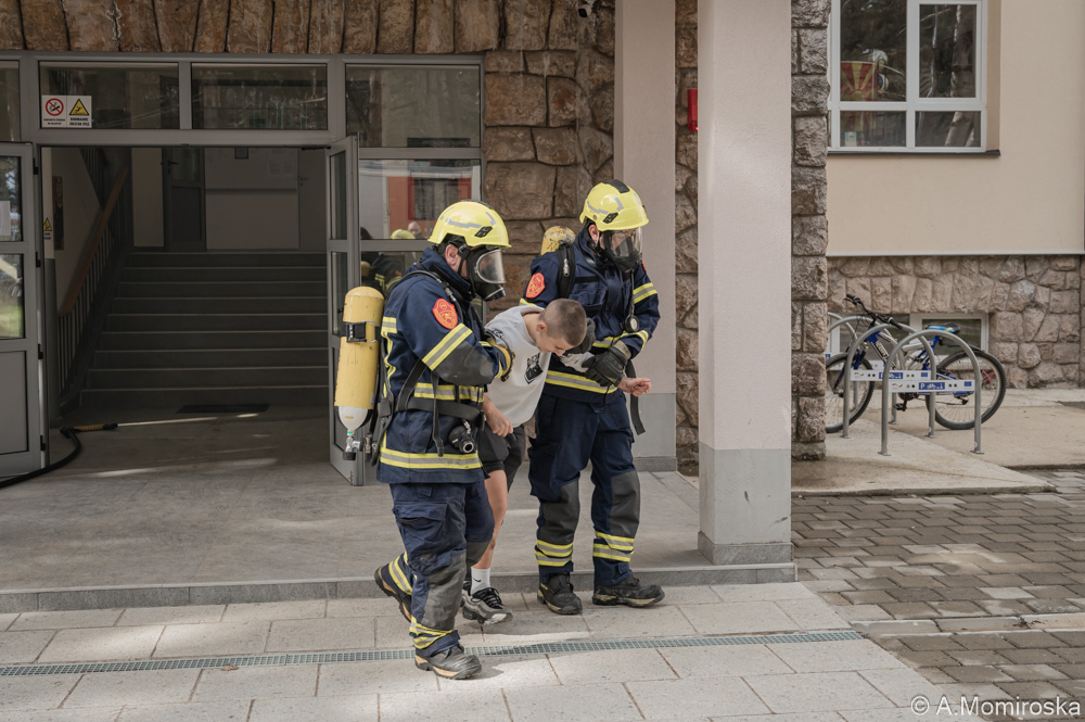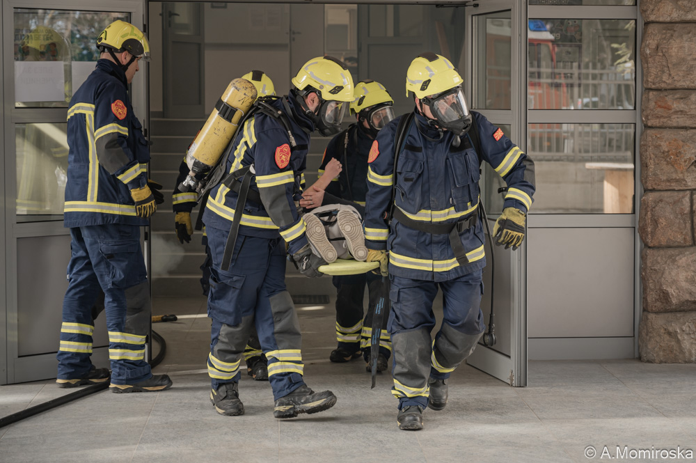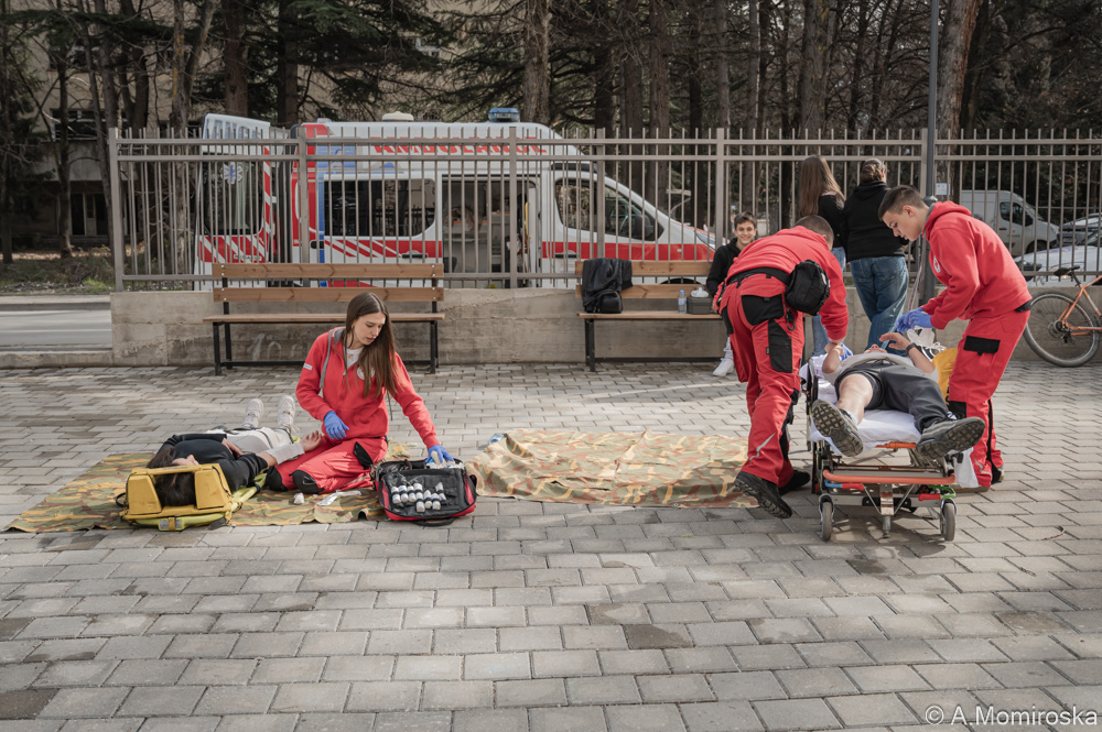 Денес сме во ОУ „Кочо Рацин“ бидејќи и тие се вселени во нова зграда и добро е да се разработи планот, односно вработените и учениците да знаат како да постапат во случај на елементарна непогода и како да се евакуираат. Показната вежба денеска беше според соодветно сценарио на случен земјотрес и пожар, каде што, навистина, многу брзо, многу организирано и одговорно целиот персонал во училиштето заедно со учениците ја напуштија зградата и се упатија на собирното место на спортското игралиште. Интервенираа и соодветните екипи, екипата на ТППЕ Охрид, СВР Охрид, Секторот за превенција, сообраќајна полиција и секако, Црвениот крст Охрид и Итната медицинска помош. Многу значајни активности се овие, затоа што и за нас како институции кои треба да реагираме, секоја ситуација е нова и добро е да се разработи, да се види како функционира системот, каде се патеките на движење и како може да се интервенира. Имавме, според сценариото и двајца ученици повредени, коишто беа третирани од тимовите за прва помош на Црвен крст Охрид и, секако, извлечени претходно од противпожарната единица, вели претседателот на Црвен крст Охрид, Сашо Точков.