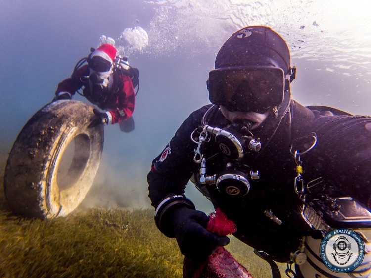 Членовите на нуркачкиот центар облечени како Дедо Мраз, од езерото извадија гуми од автомобили и камиони, лименки од пијалоци и пластични шишиња, кои ги лоцираа при нивните предходни рутински нуркања.