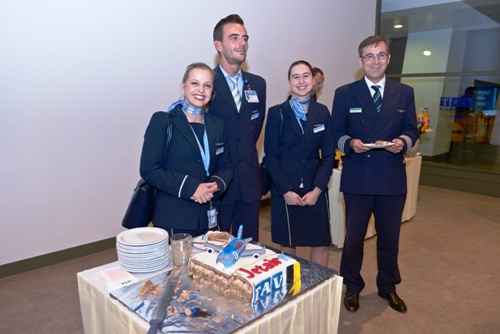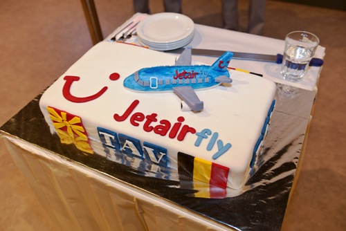 На туристите кои допатуваа во Скопје и на екипажот на воздухопловот Боинг 737-500 топло добредојде им посака генералниот менаџер на „ТАВ Македонија“, Зоран Крстевски, почесниот конзул на Белгија, Елена Никодиновска, заменик-генералниот менаџер за маркетинг на „ТАВ Македонија“, Зафер Меше, менаџерот на аеродромот „Александар Велики“ во Скопје, Неџат Курт, како и персоналот на аеродромот „Александар Велики“. Патниците и членовите на екипажот беа послужени со торта и квалитетни македонски вина.