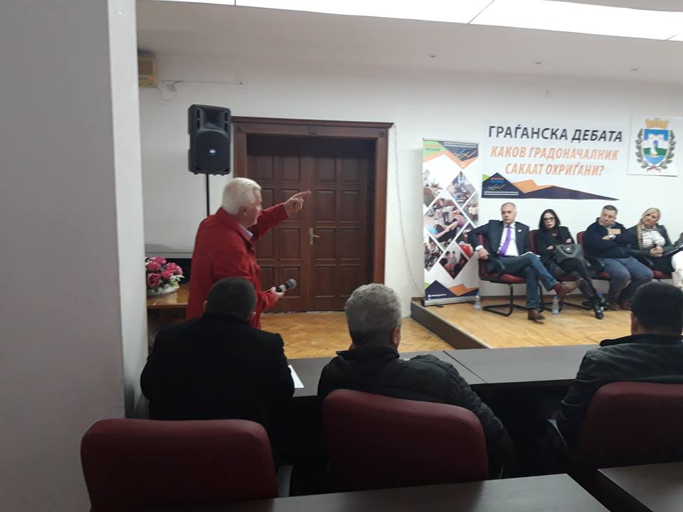 Темата отвори голема дебата, на која присутните граѓани повеќе од час и половина дискутираа дека на охриѓани им е потребен градоначалник за сите, а не, како што рекоа, партиски послушник.