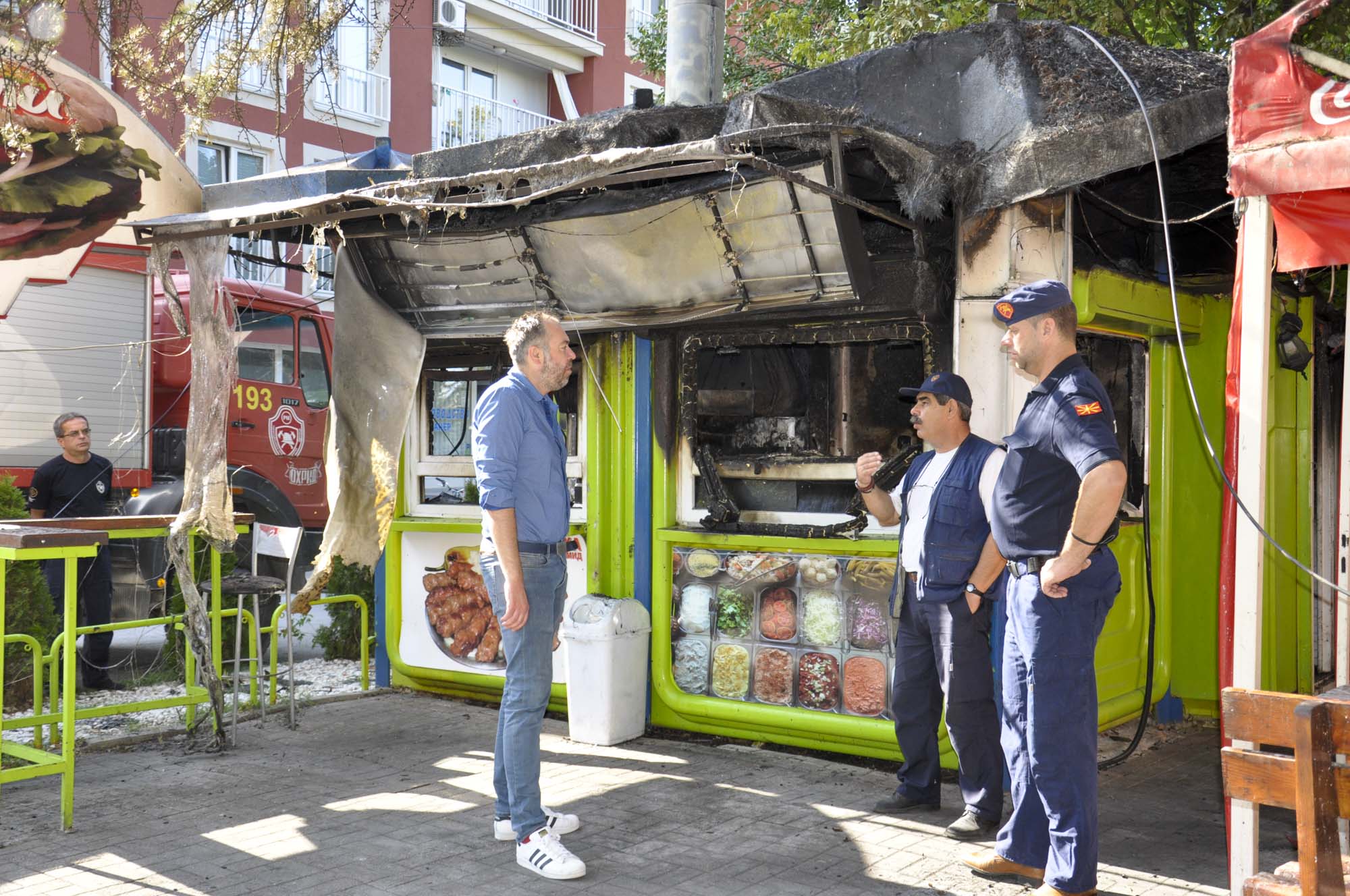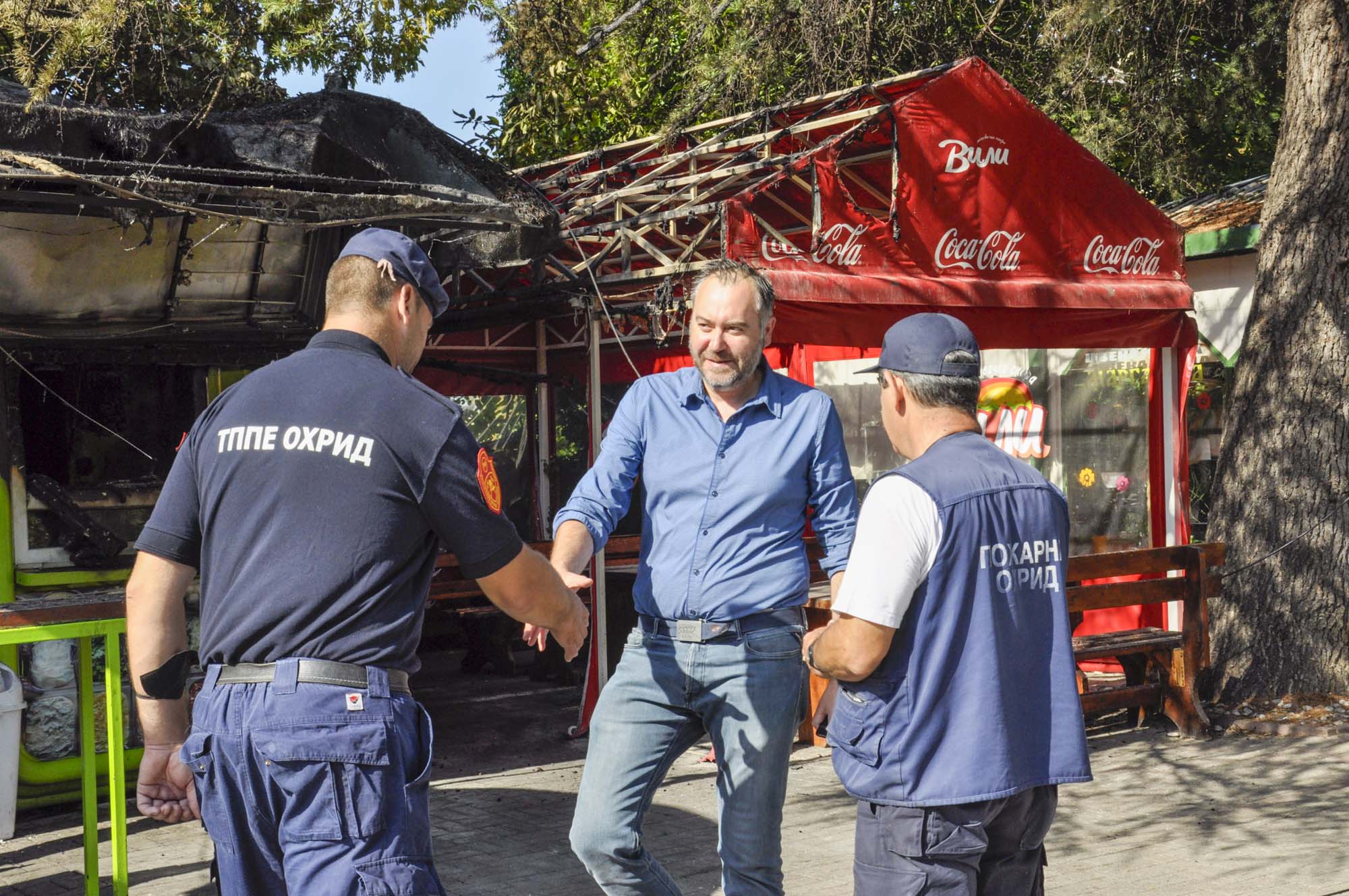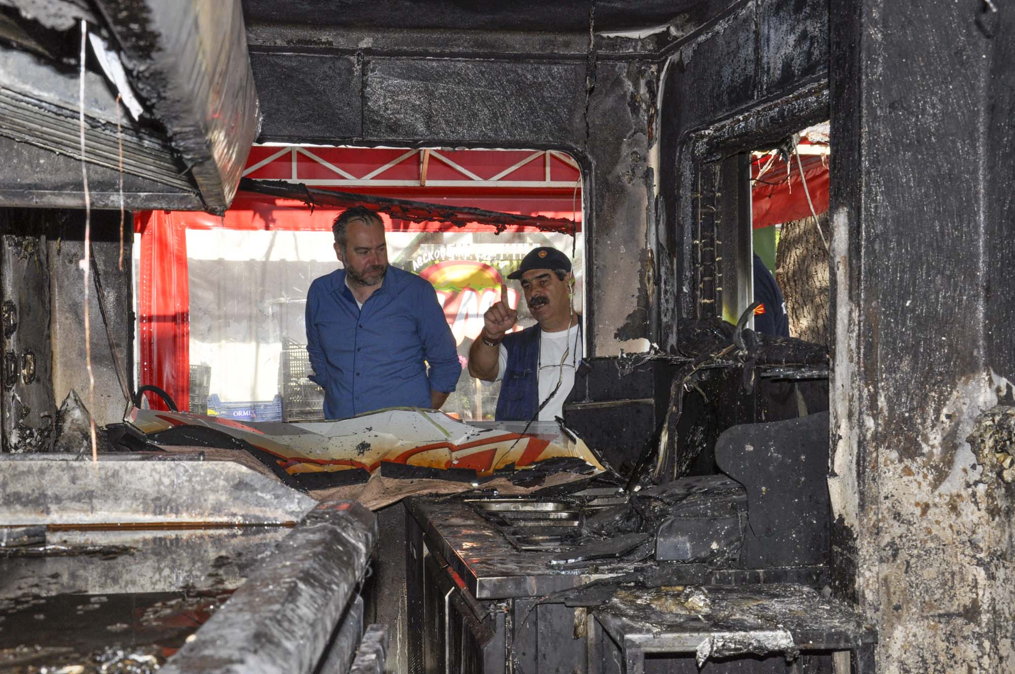 Градоначалникот Константин Георгиески утрово заедно со дел од пожарникарите од Територијалната противпожарна единица од Охрид направи увид на опожарениот објект на седвичарата „Вили“ на улицата „Димитар Влахов“, каде што вчера доцна попладне избувна голем пожар.