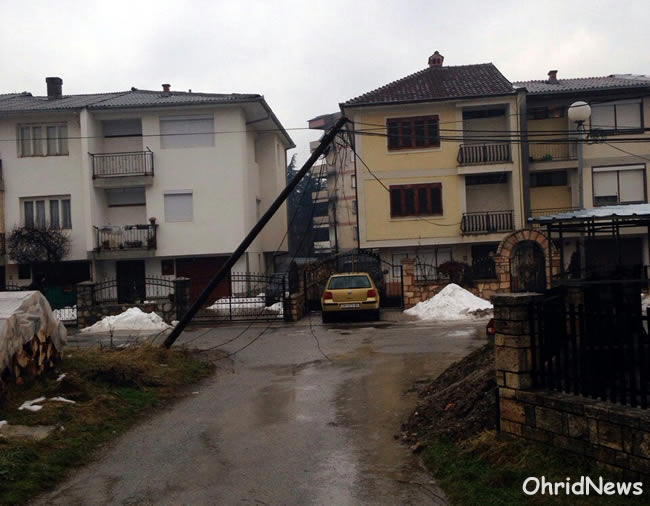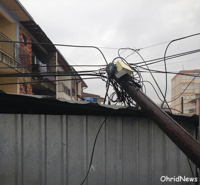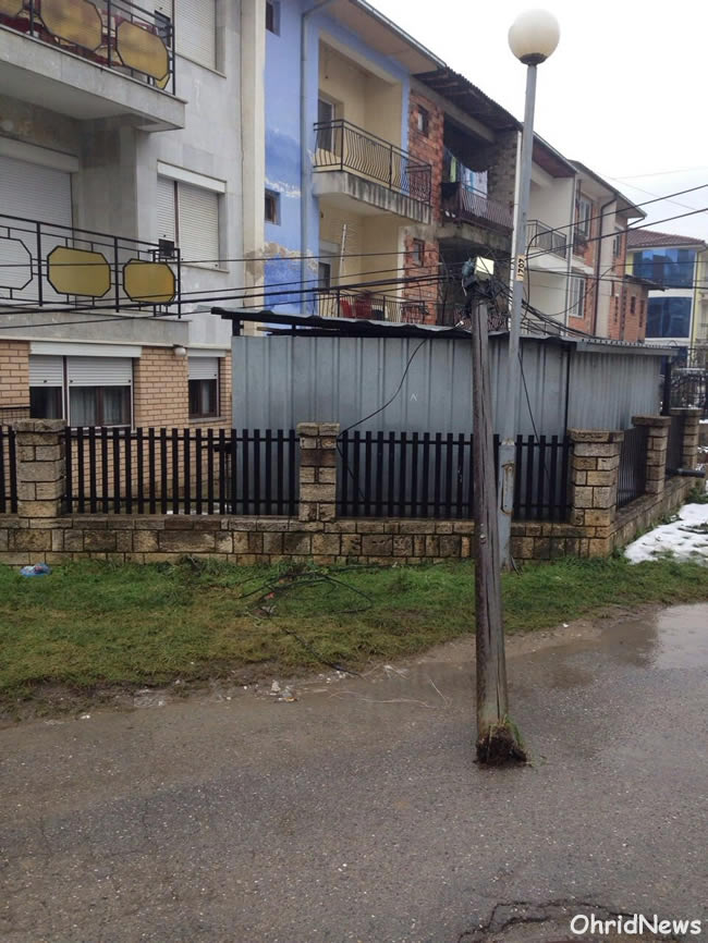 Откако надлежните се оглушија, под влијание на гравитацијата накривените бандери на оваа улица почнаа да паѓаат во дворовите на граѓаните и да го оштетуваат нивниот имот. За среќа никој не е повреден.