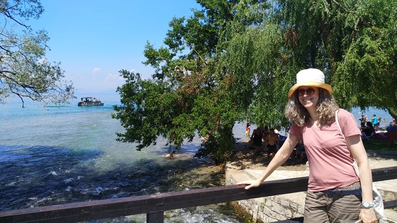 Грчката музичарка со богата кариера во Охрид остана два дена кои ги искористи за прошетки, но и пливање во Охридското Езеро.