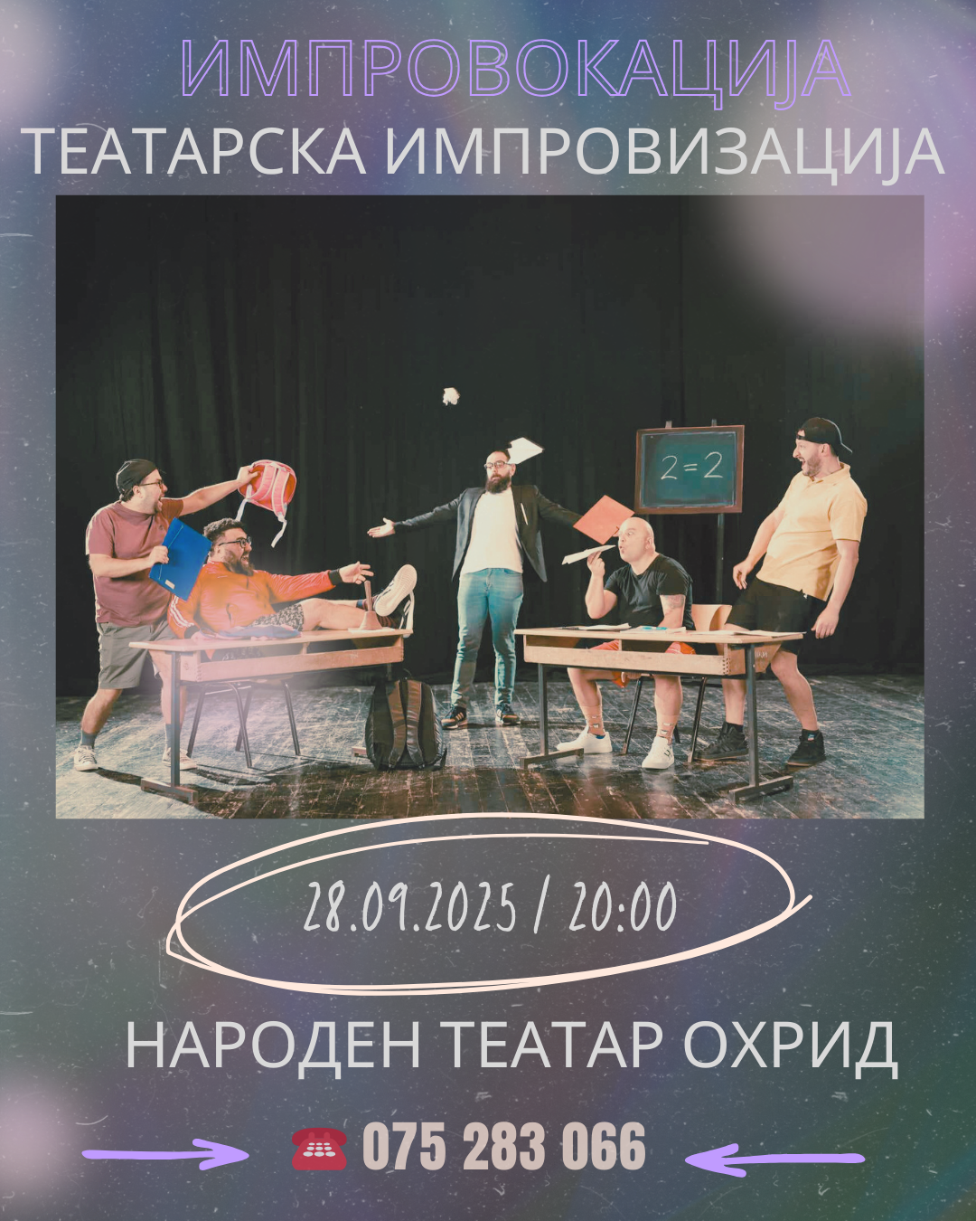 Во недела, на 28 септември 2025, во Народен Театар Охрид публиката ќе може да го погледа комичното шоу Импровокација.