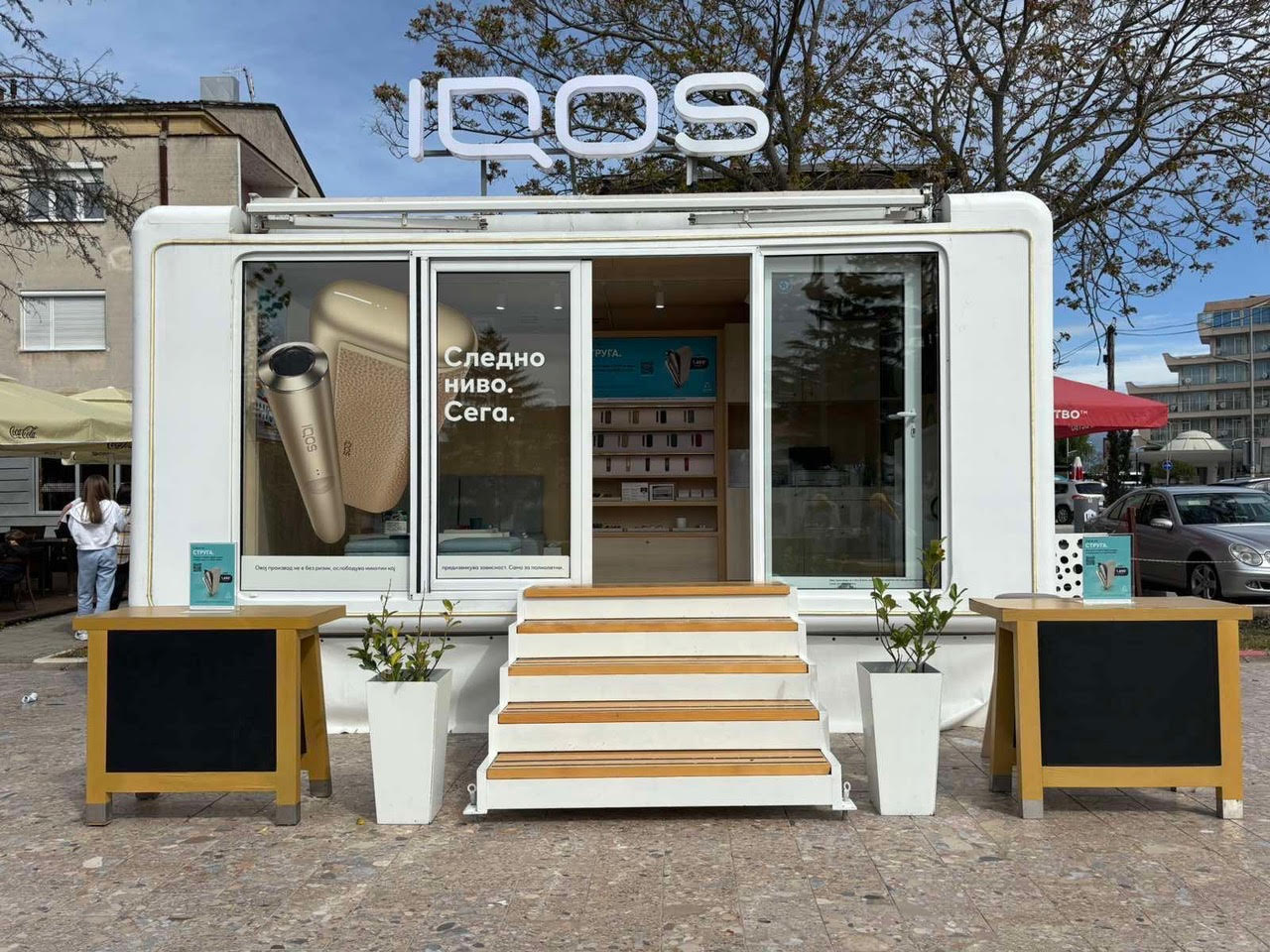 На оваа привремена локација, сите полнолетни пушачи ќе можат да се запознаат со IQOS уредите и да дознаат повеќе за нив и за напредната технологија на индукциско загревање, купување додатоци, замена на стар уред за нов, корисничка поддршка и друго.