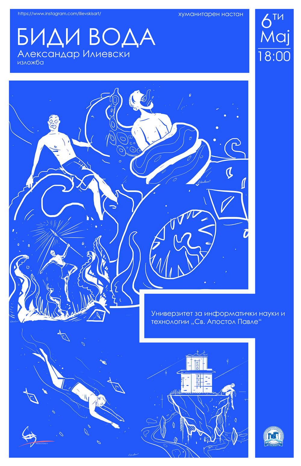 На 6-ти мај, понеделник, со почеток во 18 часот, во просториите на Универзитетот за информатички науки и технологии. „Свети Апостол Павле“ ќе се одржи првата самостојна изложба на Александар Илиевски апсолвент на Универзитетот.