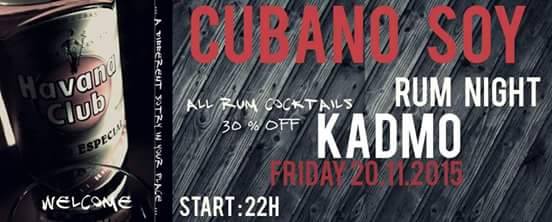 Добра забава најавуваат и од „Kadmo Bar“ каде вечерва настапува кубанското трио Cubano Soy, а ќе има и промотивни цени на сите коктели со рум. Забавата започува во 22 часот.
