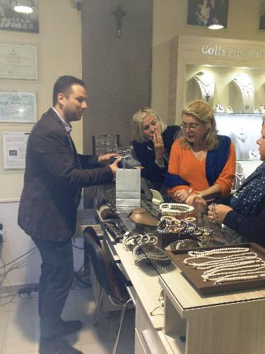 Денев, која и самата имала големо познавање околу изработката на бисерите била воодушевена од примероците накит кои имала можност да ги види во продавниците на Филеви. При тоа, од страна на сопственикот, Михајло Филев, на француската актерка и беше подарен прекрасен ѓердан изработен од охридски бисер.