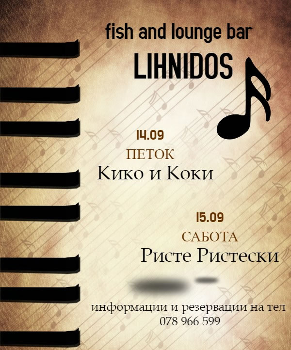 Во петок, 14 септември, во фиш и лаунџ бар Лихнидос, ќе настапат Кико и Коки.