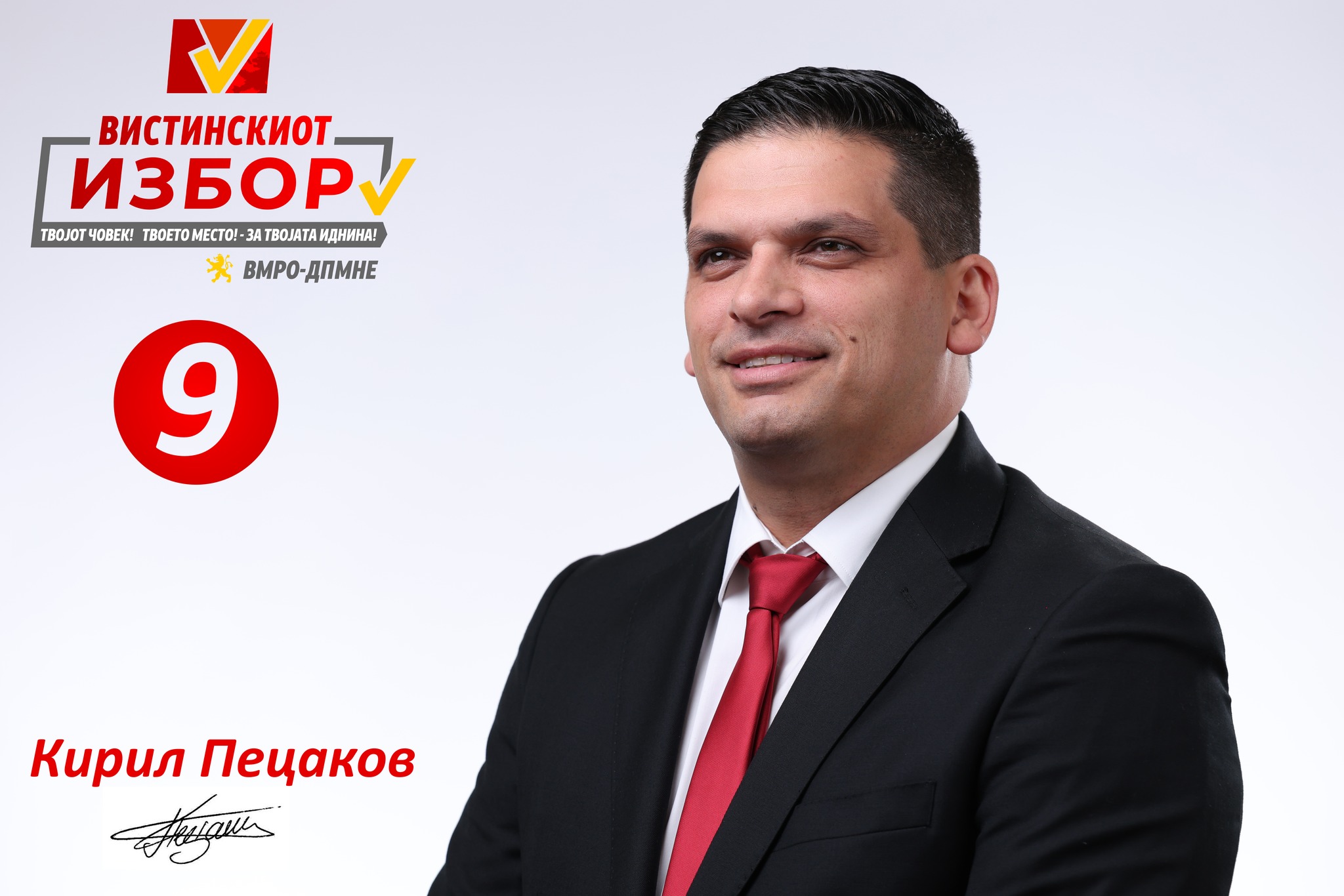 Кандидатот за градоначалник на Охрид од ВМРО ДПМНЕ и Коалицијата, Кирил Пецаков е роден во Охрид на 06.07.1985 година. Основно и средно образование завршува во Охрид, а високо образование на Стоматолошкиот факултет „Св. Пантелејмон“ во Скопје. Специјализира на Стоматолошкиот факултет „Св. Пантелејмон“ во Скопје каде се стекнува со називот специјалист по детска и превентивна стоматологија. Во два мандати беше дел од Советот на Општина Охрид од 2009 – 2013 и од 2017 – 2020 година. Од 2020 до 2021 година беше пратеник во Собранието на Република Македонија. Од 31.10.2021 година ја извршува функцијата градоначалник на Општина Охрид. Оженет е и татко на две малолетни деца.