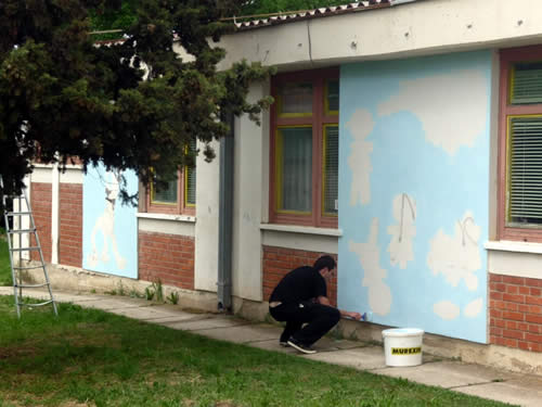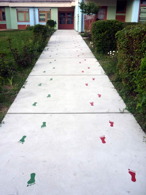 Исто така освежена е и патеката во дворот на објектот каде се исцртани стапалки во различна боја.