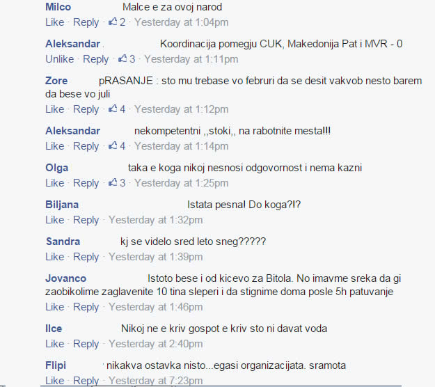 Изборот на коментари на теми објавувани во текот на седмицата се објавува во недела. Целта е да се поттикне слободната и критичка мисла за случувањата кај нас и да се актуелизираат проблемите на граѓаните. Објавените коментари во оваа рубрика се мислења на граѓани, а не на редакцијата на OhridNews, која не сноси одговорност за изнесените лични ставови на читателите. Коментари со навредлива содржина и мислења кои поттикнуваат насилство, омраза и нетрпеливост по било која основа не се поддржуваат и нема да се објавуваат.