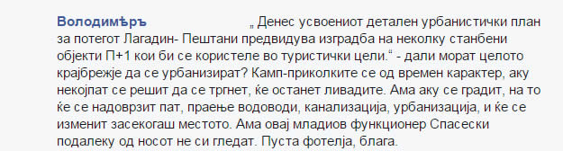 Во неделниот избор на коментари на актуелни теми кои нашиот портал ги споделува на фан страната на социјалната мрежа “Facebook“: facebook/ohridnews.mk и пристигнатите реакции и мислења на контакт адресата на редакцијата, денеска, пренесуваме мислења на граѓаните за урбанизацијата на крајбрежјето, ефикасноста на зимските служби, поплавите…