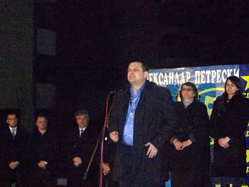 „Од своите ветувања за мед и млеко во Македонија, Владата го оствари само тоа за млекото – навистина тече млеко, но по нашите улици, од незадоволните и измамените фармери. И наместо, по примерот на министерката Бакојани, која е расшетана по светот да лобира за интересите за Грција, министрите во нашата Влада да шетаат по светот и да лобираат за интересите на Македонија, тие се шетаат по Лакочереј, Рамне, Велгошти и Косел, за да им го држат стравот на нивните кандидати за локалните избори во Охрид. На најголемиот нивни митинг во Охрид, на кој донесоа луѓе со 500 автобуси, најмалку од све имаше – охриѓани“ – истакна Александар Петрески во своето обраќање до присутните.