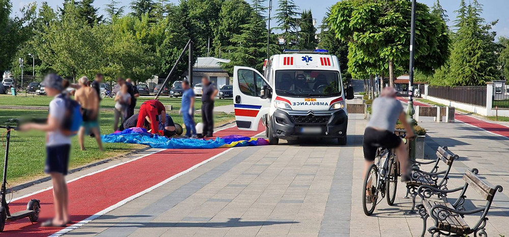 Инцидентот бил пријавен вчера во 17.45 часот во СВР Охрид. Според пријавата, во близина на Полициската станица за безбедност на патниот сообраќај Охрид при слетување со параглајдер, 14-годишник од Прилеп удрил во канделабра.