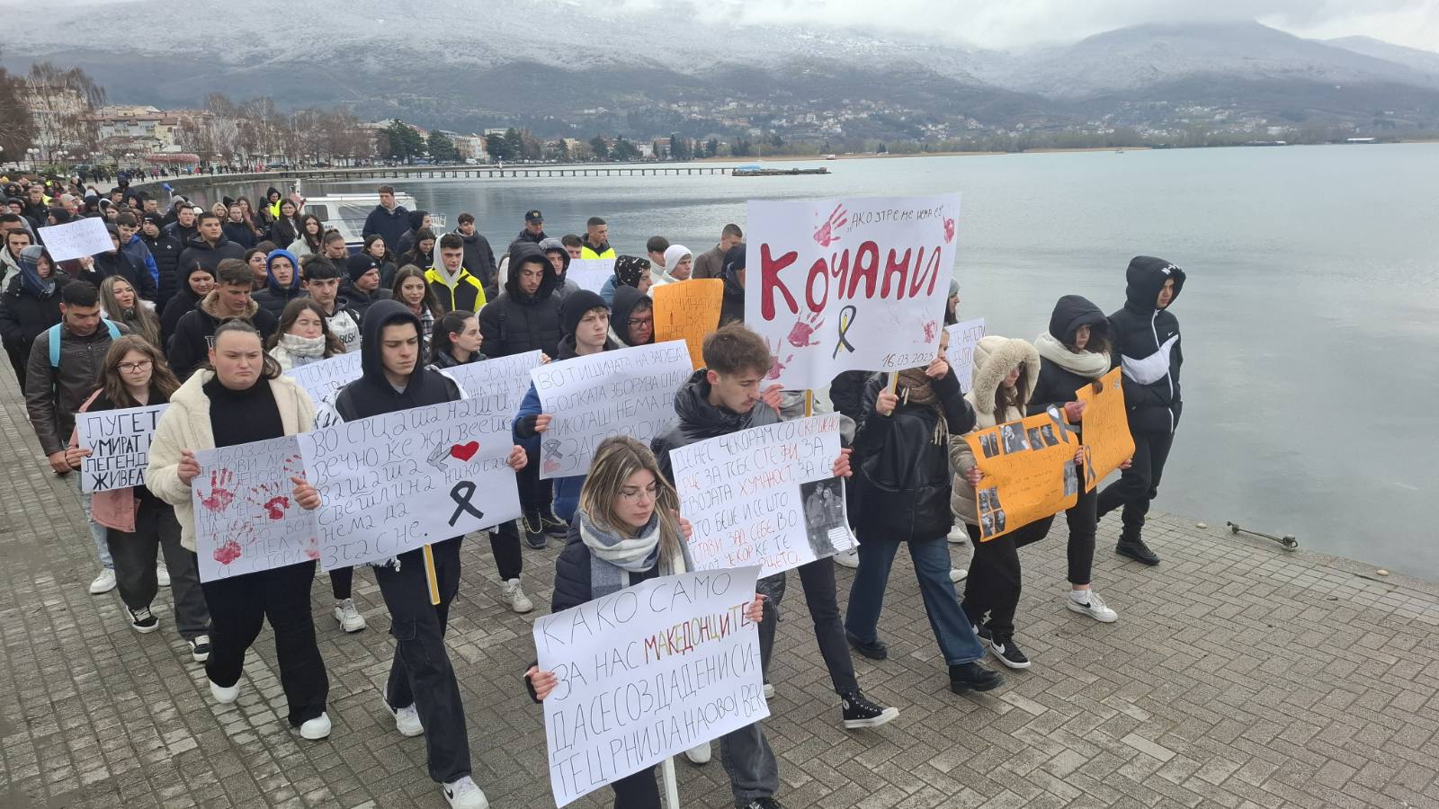 Со мирен марш кој започна од предворјата на четирите средните училишта, средношколците од Охрид им оддадоа почит на настраданите лица во несреќата во Кочани.