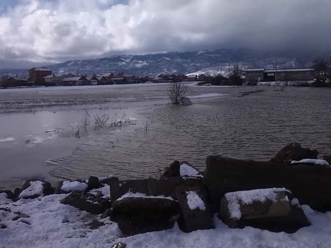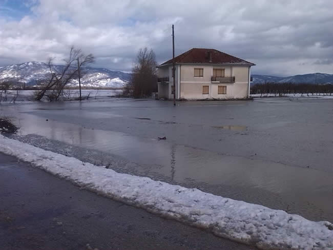 Интензивните врнежи од дожд и снег, што викендов го зафатија Охридско-струшкиот регион предизвикаа поплави во повеќе населени места.